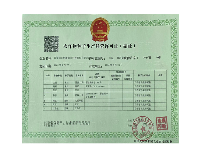 呂梁山花爛漫農業科技股份有限公司是山西省農業產業化重點龍頭企業,公司成立于2008年,法人代表賀虎平,注冊資本1000 萬元,現有員工 30 人。公司位于興縣蔡家會鎮蔡家會村建有占地面積1萬多平方米生產區和辦公區,年總加工雜糧能力達到4萬噸。擁有一套日精加工50噸谷子成套設備生產流水線;擁有一套日精加工30噸豆面、蕎面設備流水生產線;擁有一套日精加工50噸紅小豆、豇豆、綠豆、腎型黃豆、紅蕓豆設備流水生產線,2020年引進省農科院農產品加工研究所谷子精深加工技術,目前設計年產300噸的小米油加工一條龍生產線已經安裝調試完畢,產品經化驗達到國家一級油標準,并獲得兩項專利證書。主要產品有“山花爛漫”牌有機小米、綠色小米各種精美包裝系列;蔡家會村豇豆面、豌豆面等雜糧面、手搟豆面系列、以及有機精品雜糧系列。擁有“山花爛漫”山西省著名商標。公司采用線下和線上銷售相結合的營銷模式。